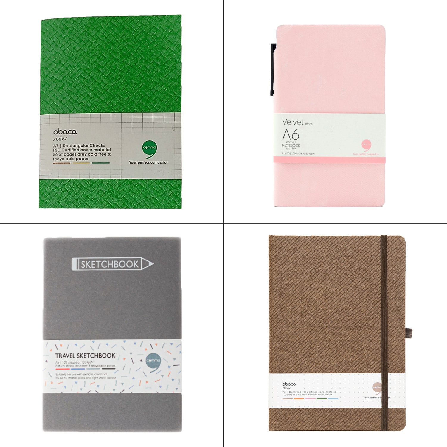 - Versatile Notebooks Collection – Includes A5 Dot Grid Notebook, A6 Velvet Pocket Notebook, A7 Checks Notebook, and A6 Travel Sketchbook for writing, journaling & sketching.